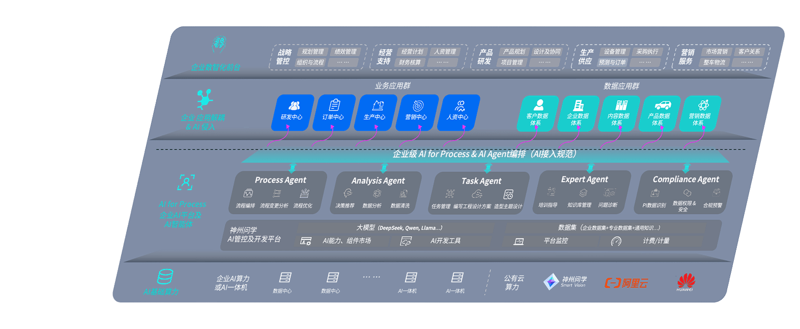 君临国际问学智车解决方案是一套基于AI技术的汽车行业智能化系统,,覆盖从底层算力到顶层AI应用的全栈方案。。。方案由算力层、、、、模型层和应用层组成:算力层,,,,方案支持多种一体机配置,,具备云端灵活部署、、、多云适配以及动态优化计算资源的能力;模型层,,,君临国际问学平台版提供了企业级AI应用一站式构建与管理平台,,,,支持基于后训练强化技术的汽车企业专属模型的训练、、、评测和运营;应用层,,,,君临国际问学DeepSeek版提供包括超级员工、、、智能招采、、、智能营销、、、、智能客服、、、、AI for BI等一系列解决方案,,可助力汽车行业实现数字化转型,,,,让管理更智能、、、、响应更敏捷。。。。