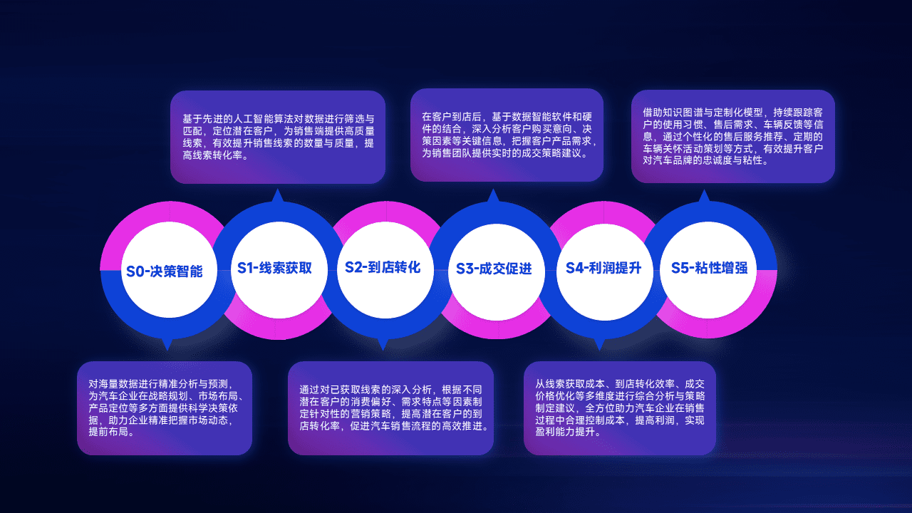 通过拓宽潜在客户来源、、、、优化线索分配并提高到店转化率,,以增强销售效率。。。。同时,,,利用线索数据不断优化分析模型,,,,有效提升转化率,,,扩大营销影响力。。。。